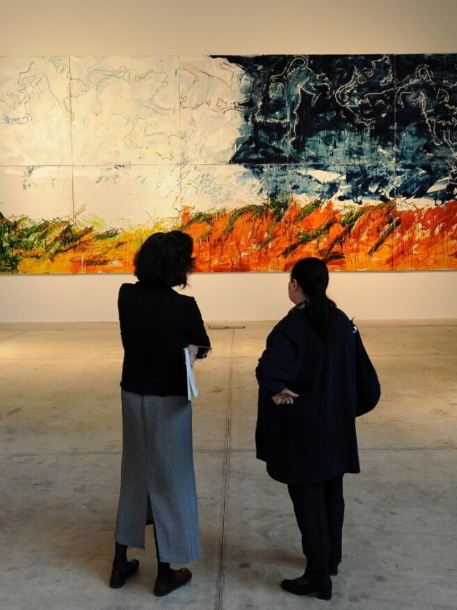 C’è anche il polittico – quattordici tele di grandi dimensioni - che dipinse, su commissione dell’avvocato Gianni Agnelli, per la sala da pranzo della casa romana dell’Avvocato. Un trionfo di stelle, querce e ancora palme: Sostituirono una prima versione, “Festa cinese”, tutta rosseggiante con falci, martelli e sventolio di bandiere, che fu rifiutata..