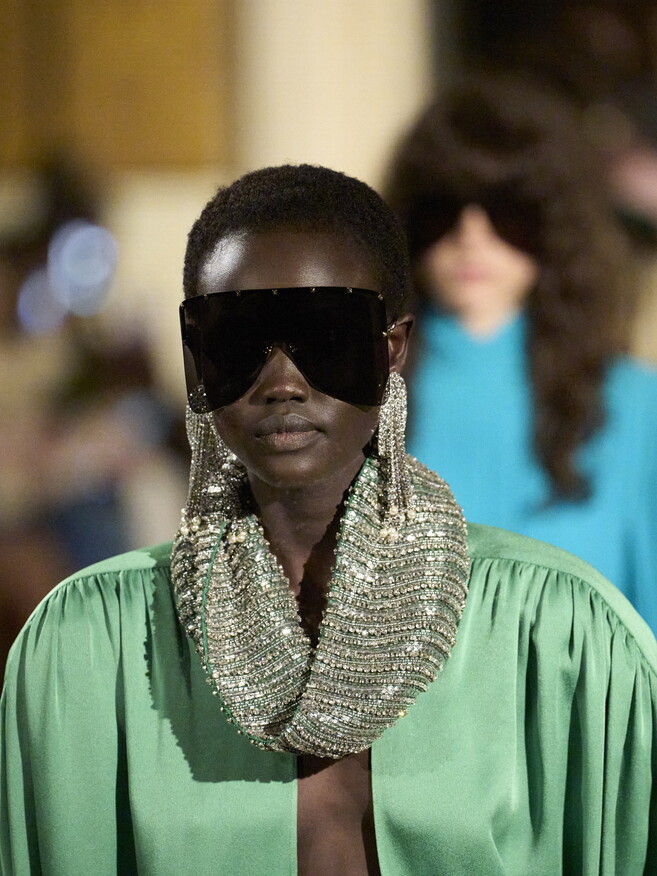 Il palazzo barocco voluto da papa Urbano VIII che ospita dal 1953 le collezioni della Galleria Nazionale d'Arte Antica, con opere di Caravaggio, Raffaello e Artemisia Gentileschi. “Un contenitore ideale per uno show di moda, perché rende visibile la frizione costitutiva tra rigore e sconfinamento che attraversa tanto l’architettura quanto il vestire – ha detto Michele quarto direttore creativo della maison da quando Valentino Garavani che è scomparso lo scorso 19 gennaio, si era ritirato nel 2008. “La costruzione di un abito, come quella dell’edificio, è sempre l’esito provvisorio di una negoziazione tra codice e invenzione, tra memoria e mutazione. Ogni gesto creativo si misura con una tradizione che lo precede, e proprio in questo confronto trova la possibilità di uno slittamento capace di mettere in crisi una struttura normativa prestabilita. Non è la vittoria di una polarità sull’altra a generare senso, ma il loro stare in compresenza: un equilibrio instabile che fa della forma un campo di forze continuamente operanti, un sistema aperto di interferenze”.
